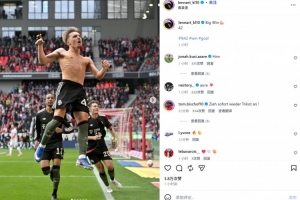 读秒绝杀!拜仁小将卡尔社媒晒脱衣庆祝照:重大的胜利