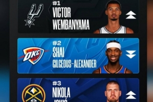 体育资讯3月28日讯 在刚刚更新了MVP榜单中,文班亚马打破亚历山大的垄断,上升至第一。