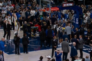 下一篇: 穆迪左膝包满冰袋坐着担架车落寞离场!追梦单手搂抱安慰!